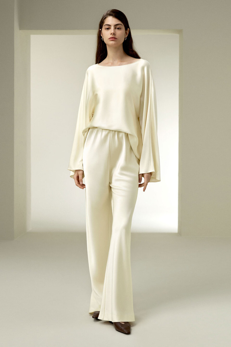 Blusa de Seda con Cuello Redondo de Seda Charmeuse