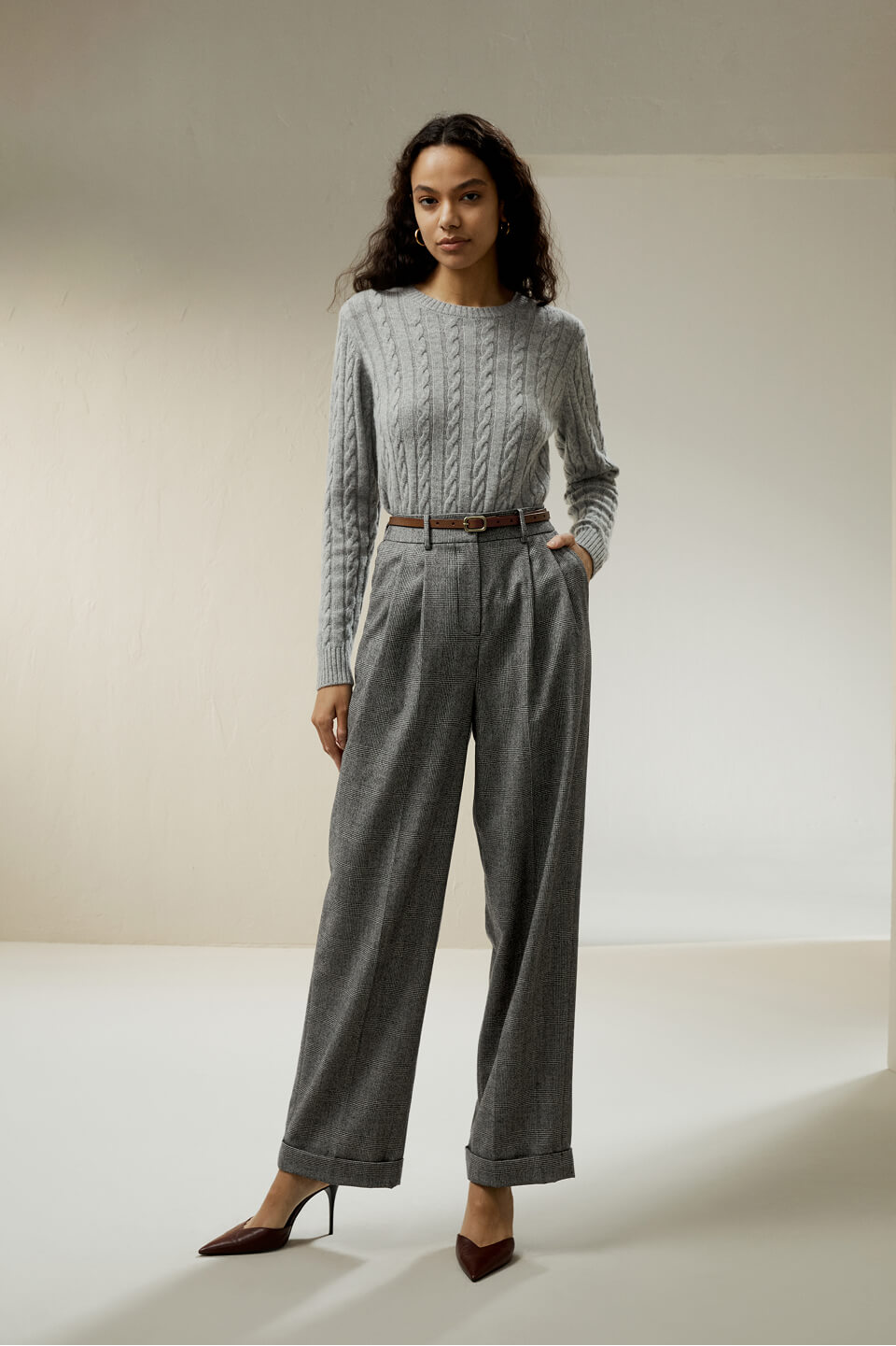 Maglione classico in maglia a cavo con bordi a coste
