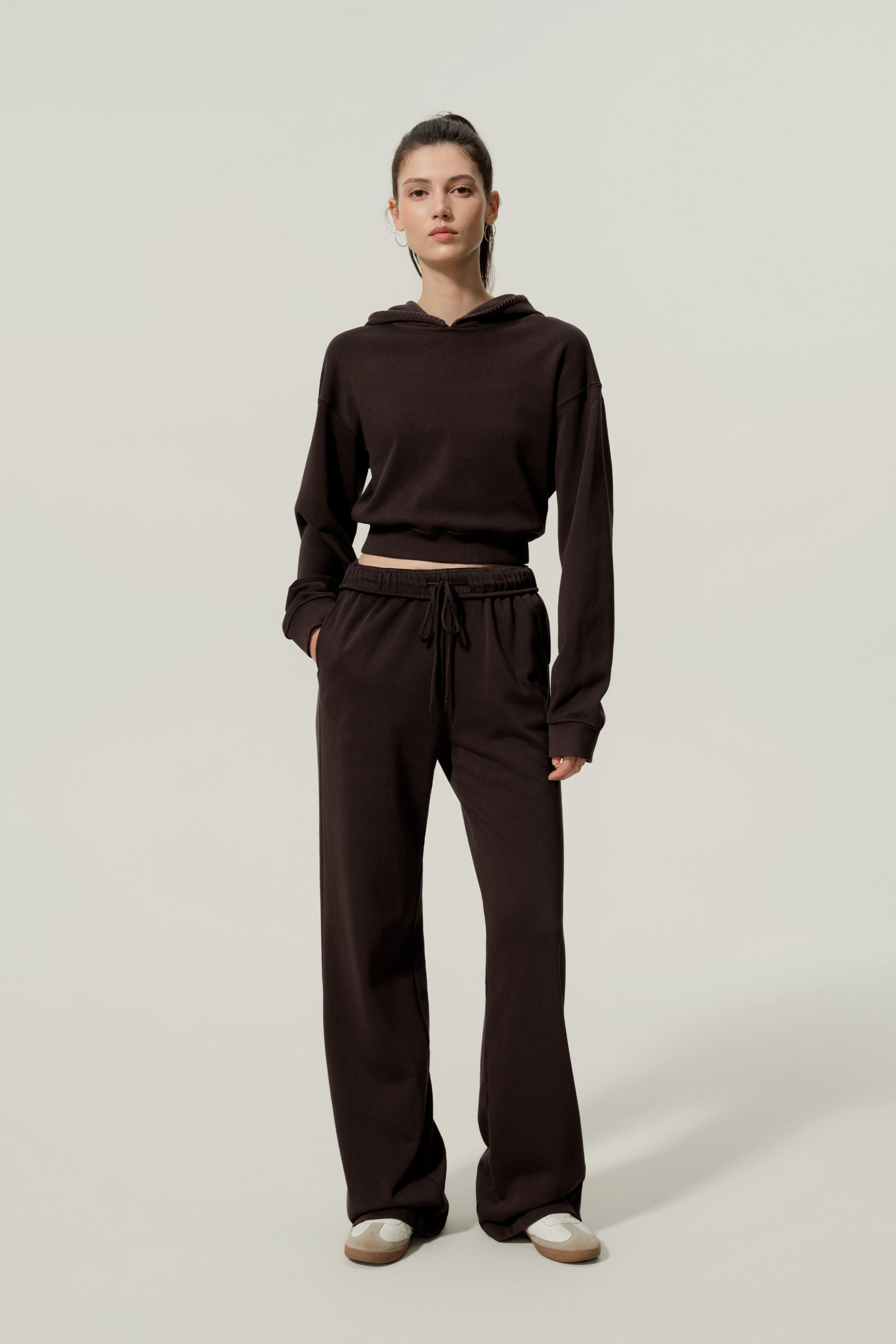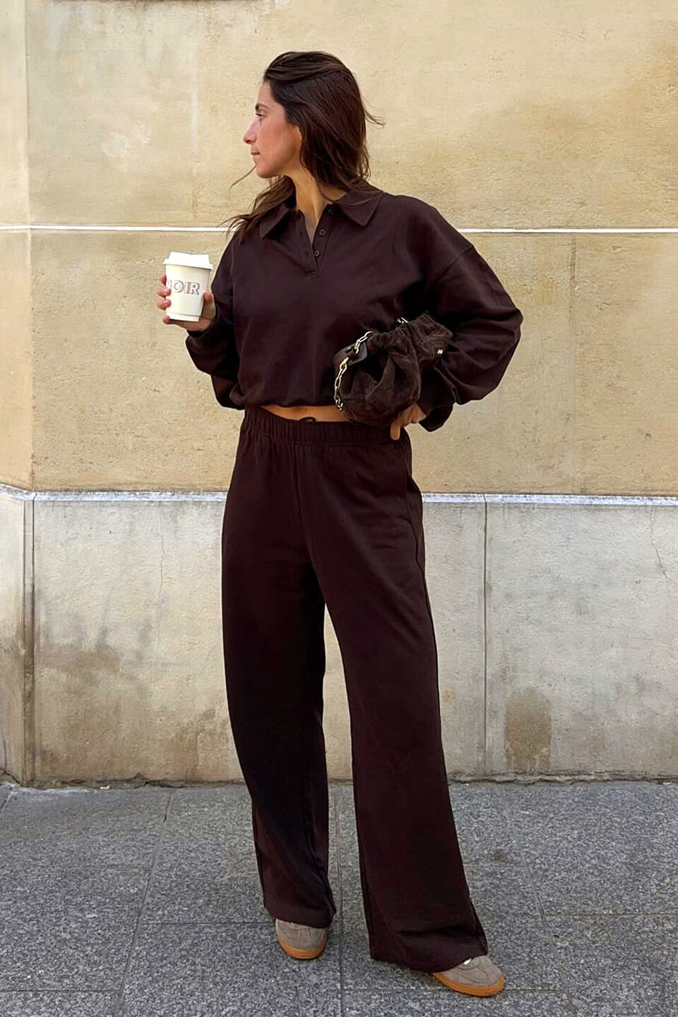 A clean silhouette without any stretch makes even light outings stylish.
